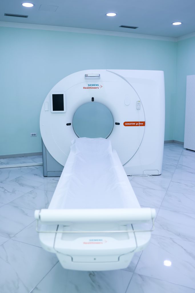 3.Tomografia e kompjuterizuar (CT): Përdor teknologji të avancuar për të prodhuar imazhe të detajuara të gjitha regjoneve anatomike te trupit te njeriut nga plane te ndryshme dhe 3D. Imazhet skanerike përdoren për të vlerësuar anatomine dhe funksionin e organëve të brendshme, si dhe për të identifikuar tumoret dhe shume patologji te tjera.